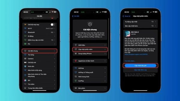 - Với iPhone/iPad: Mở Cài đặt → Cài đặt chung → Cập nhật phần mềm