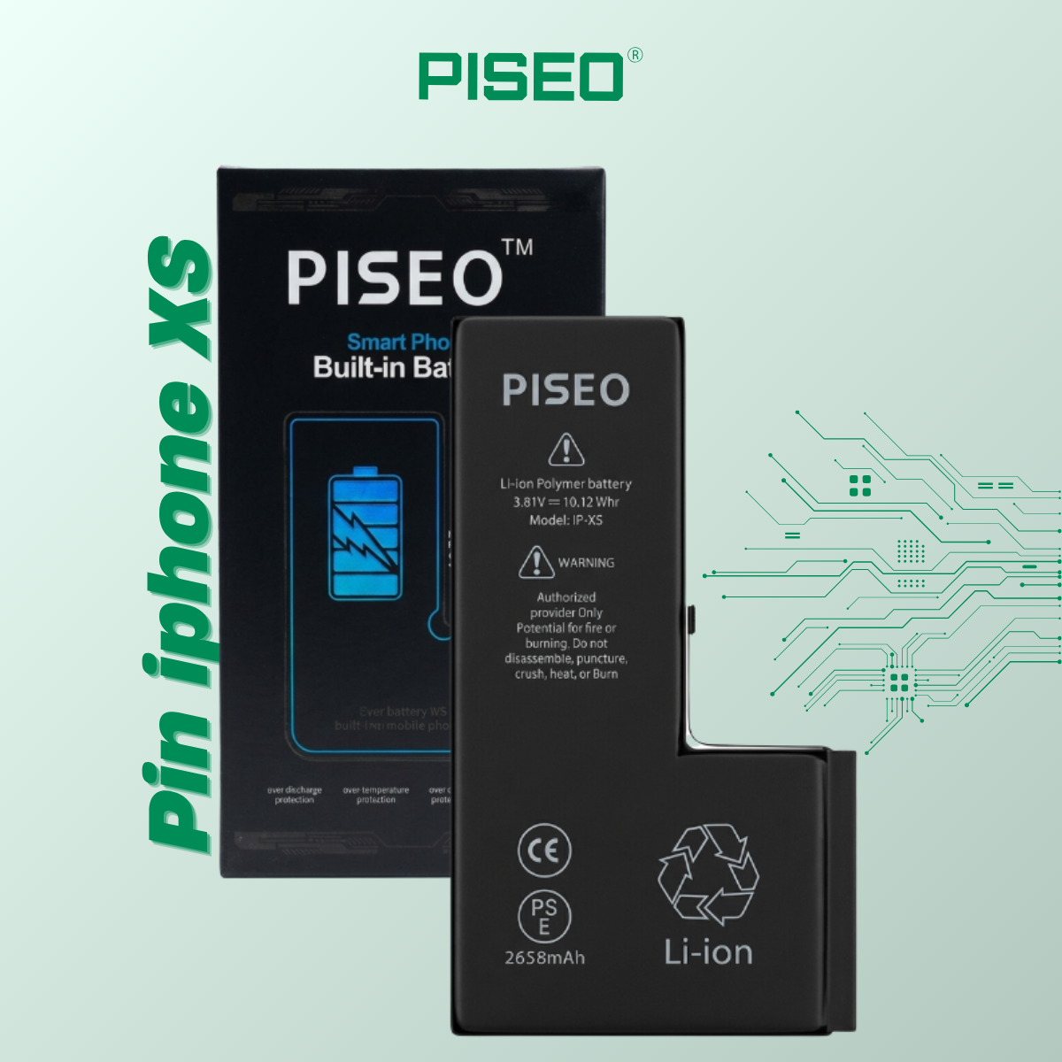 Pin iPhone XS Piseo dung lượng chuẩn 2800mAh